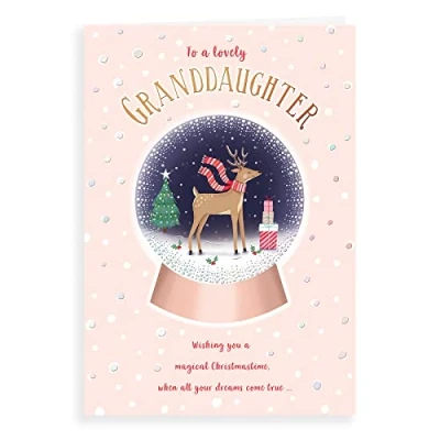 A High Quality Greeting Card and Envelope From Piccadilly Greetings Designed and made in the UK - supporting British jobs Caption: Granddaughter Description: Snowglobe reindeer Approximate size: 9 x 6 inches