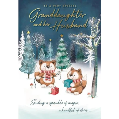Piccadilly Greetings Christmas Card For a Very Special Granddaughter & Husband Cute Foxes 9 x 6 inches
