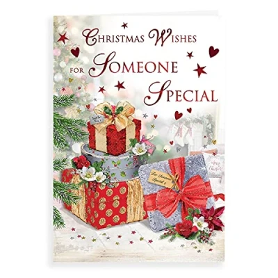 A High Quality Christmas Greeting Card and Envelope From Regal Publishing Designed and made in the UK - supporting British jobs Caption: Someone Special Description: Presents Approximate size: 9 x 6 inches