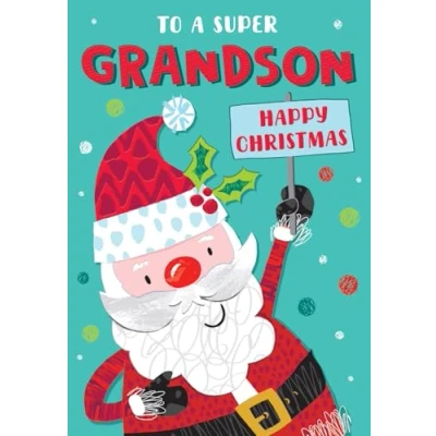 Piccadilly Greetings Christmas Card To a Super Grandson Fun Santa 9 x 6 inches