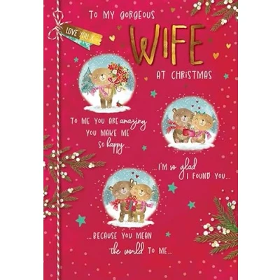 Piccadilly Greetings Christmas Card To my Gorgeous Wife Bear storyboard 9 x 6 inches