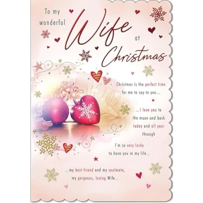 Piccadilly Greetings Christmas Card To my Wonderful Wife heart bauble 9 x 6 inches
