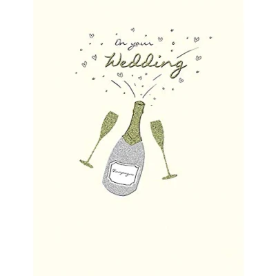 High quality greeting card and envelope Caption: Wedding Description: Champagne Bottle & Glasses Approximate size (inches): 8 x 6 Designed and made in the UK