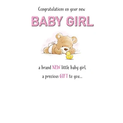 High quality greeting card and envelope Caption: Baby Girl Description: HH Baby Girl Bear and Duck Approximate size (inches): 7 x 5 Designed and made in the UK