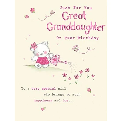 High quality greeting card and envelope Caption: Great Granddaug Description: Bear & Watering Can Approximate size (inches): 8 x 6 Designed and made in the UK