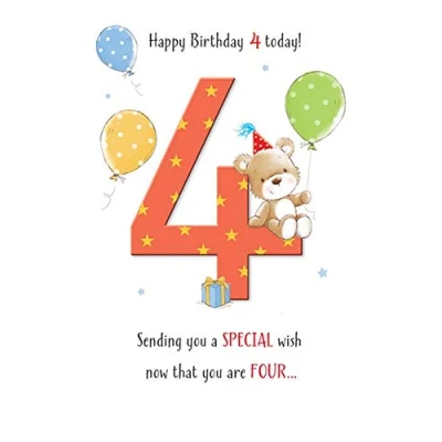High quality greeting card and envelope Caption: Age 4 Description: HH Age 4 Bear On Four Approximate size (inches): 7 x 5 Designed and made in the UK