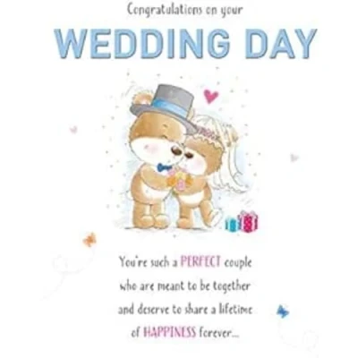 High quality greeting card and envelope Caption: Wedding Description: HH Wedding Bear Couple Approximate size (inches): 9 x 6 Designed and made in the UK