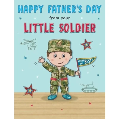 A High Quality Father's Day Card and Envelope From Piccadilly Greetings Designed and made in the UK - supporting British jobs Caption: From your Little Soldier Description: Army boy Approximate size: 8 x 6 inches