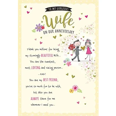 A high quality greeting card and envelope from piccadilly greetings Designed and made in the UK Caption: Anniv Wife High quality and finishing Approximate size (inches): 9 x 6