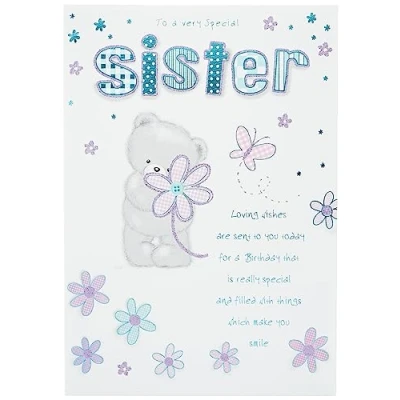 A high quality greeting card and envelope from piccadilly greetings Designed and made in the UK Caption: Sister High quality and finishing Approximate size (inches): 9 x 6