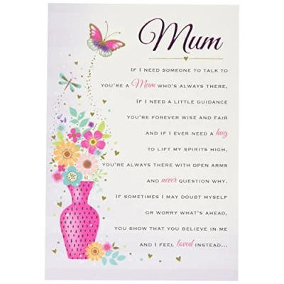 A High Quality Greeting Card and Envelope From Regal Publishing Designed and made in the UK - supporting British jobs Caption: Mum Description: Heartfelt Wishes Mum Flowers in a vase Approximate size: 9 x 6 inches