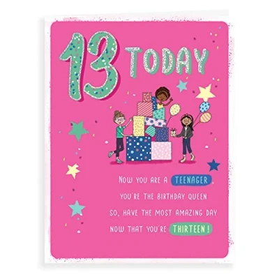 A High Quality Greeting Card and Envelope From Piccadilly Greetings Designed and made in the UK - supporting British jobs Caption: Age 13 F Description: Presents Approximate size: 8 x 6 inches