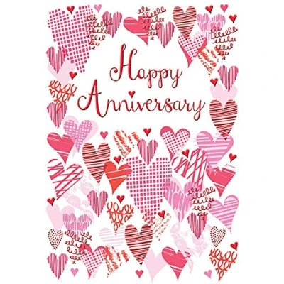 A High Quality Greeting Card and Envelope From Piccadilly Greetings Designed and made in the UK - supporting British jobs Caption: Anniv Your Description: All Over Hearts Approximate size (inches): 7 x 5