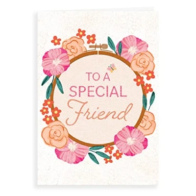 A High Quality Greeting Card and Envelope From Piccadilly Greetings Designed and made in the UK - supporting British jobs Caption: Birthday Description: Friend stitching Approximate size: 7 x 5 inches