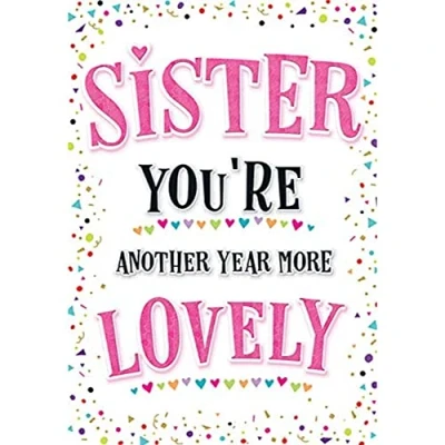A High Quality Greeting Card and Envelope From Piccadilly Greetings Designed and made in the UK - supporting British jobs Caption: Sister Description: Glitz Sister Another year Approximate size: 7 x 5 inches
