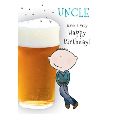 High quality greeting card and envelope Caption: Uncle Description: Man Standing Against Beer Approximate size (inches): 7 x 5 Designed and made in the UK