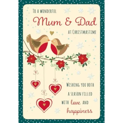 Piccadilly Greetings Modern Christmas Card, Couple Mum & Dad, 2 robins 7 x 5 inches
