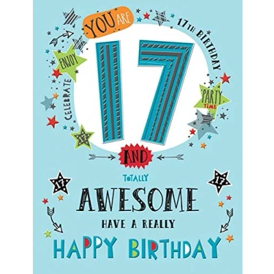 High quality greeting card and envelope Caption: Age 17 Description: Totally Awesome Approximate size (inches): 8 x 6 Designed and made in the UK