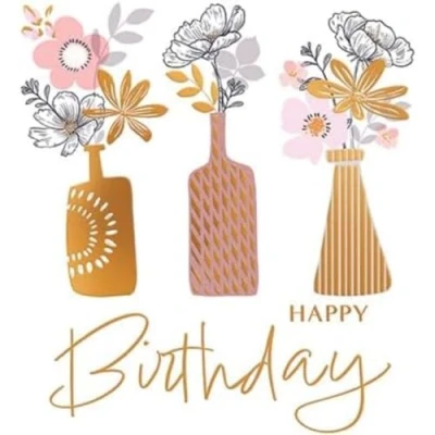 Piccadilly Greetings Modern Luxury Birthday Card, 3 Vases 160 mm sq