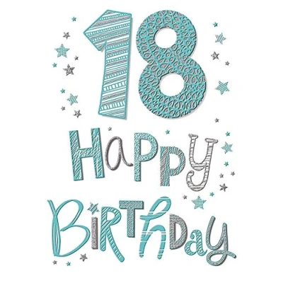 High quality greeting card and envelope Caption: Age 18 Description: Textured Foil Approximate size (inches): 9 x 6 Designed and made in the UK
