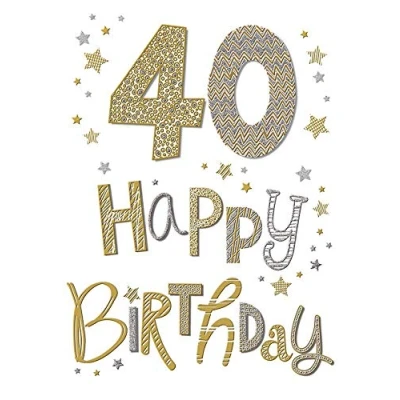 High quality greeting card and envelope Caption: Age 40 Description: Textured Foil Approximate size (inches): 9 x 6 Designed and made in the UK
