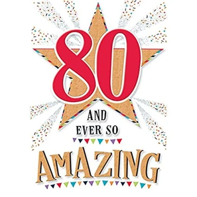 A High Quality Greeting Card and Envelope From Piccadilly Greetings Designed and made in the UK - supporting British jobs Caption: Age 80 Birthday Description: Glitz Age 80 Ever so amazing Approximate size: 7 x 5 inches