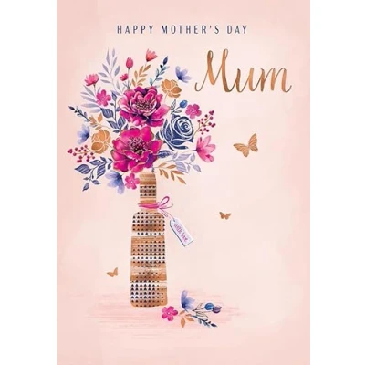 A High Quality Mother's Day Greeting Card and Envelope From Piccadilly Greetings Designed and made in the UK - supporting British jobs Caption: Mum Description: Vase of flowers Approximate size: 9 x 6 inches
