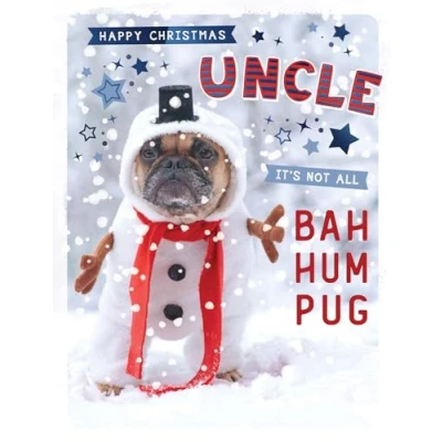 Piccadilly Greetings Sentiment Christmas Card, Uncle, Snowman dog 8 x 6 inches