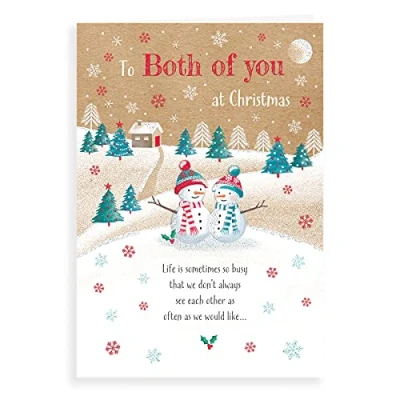 A High Quality Christmas Greeting Card and Envelope From Piccadilly Greetings Designed and made in the UK - supporting British jobs Caption: To Both Of You Description: Snow couple Approximate size: 9 x 6 inches