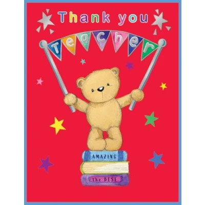 Piccadilly Greetings Thank You Teacher Card Teddy Bear 8 x 6 inches
