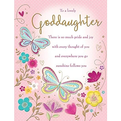 A high quality greeting card and envelope from piccadilly greetings Designed and made in the UK Caption: Goddaughter High quality and finishing Approximate size (inches): 8 x 6