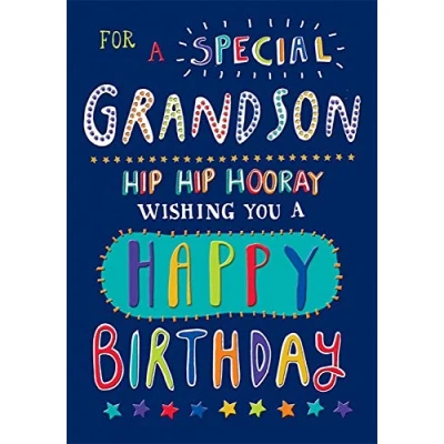 High quality greeting card and envelope Caption: Grandson Description: Text On Navy Approximate size (inches): 7 x 5 Designed and made in the UK