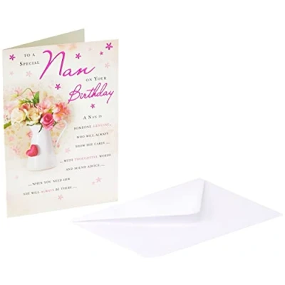 A High Quality Greeting Card and Envelope From Piccadilly Greetings Designed and made in the UK - supporting British jobs Caption: Nan Description: Flowers In Vase Approximate size (inches): 7 x 5