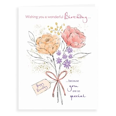 Piccadilly Greetings Traditional Birthday Card Peonies 8 x 6 inches