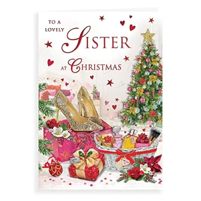 A High Quality Christmas Greeting Card and Envelope From Regal Publishing Designed and made in the UK - supporting British jobs Caption: Sister Description: Shoes & pressies Approximate size: 9 x 6 inches