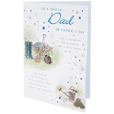 A high quality greeting card and envelope from piccadilly greetings Designed and made in the UK Caption: Dad High quality and finishing Approximate size (inches): 10 x 7
