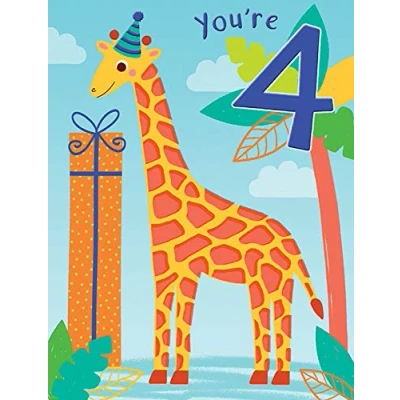 A High Quality Greeting Card and Envelope From Piccadilly Greetings Designed and made in the UK - supporting British jobs Caption: Age 4 M Description: Age 4 M Giraffe Approximate size (inches): 8 x 6