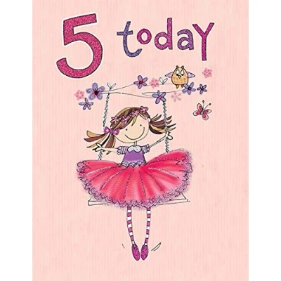 High quality greeting card and envelope Caption: Age 5 F Description: Girl On Swing Approximate size (inches): 8 x 6 Designed and made in the UK
