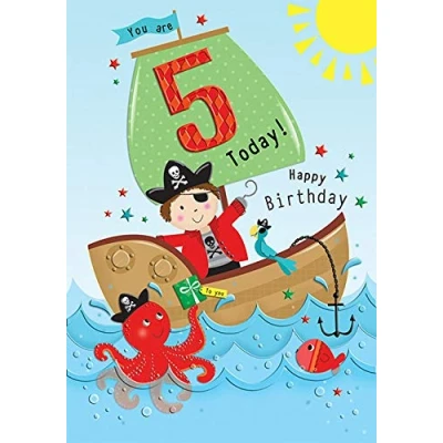 High quality greeting card and envelope Caption: Age 5 M Description: Pirate Sailing Approximate size (inches): 7 x 5 Designed and made in the UK