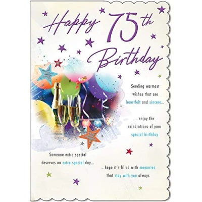 A high quality greeting card and envelope from piccadilly greetings Designed and made in the UK Caption: Age 75 High quality and finishing Approximate size (inches): 9 x 6