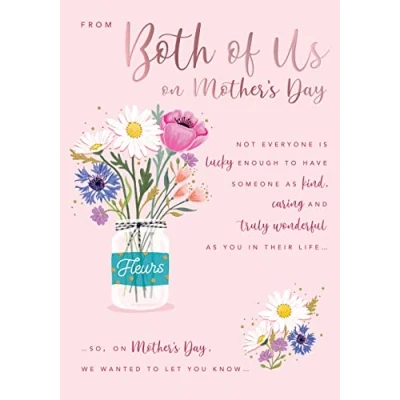 A High Quality Greeting Card and Envelope From Regal Publishing Designed and made in the UK - supporting British jobs Caption: Mum From Both Of Us Description: Flowers in a jar Approximate size: 9 x 6 inches