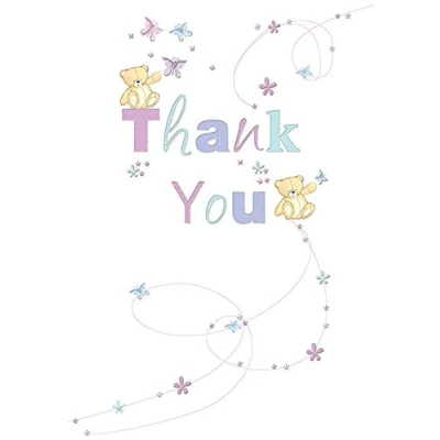 High quality greeting card and envelope Caption: Thank You Description: Bears and Butterflies Approximate size (inches): 7 x 5 Designed and made in the UK