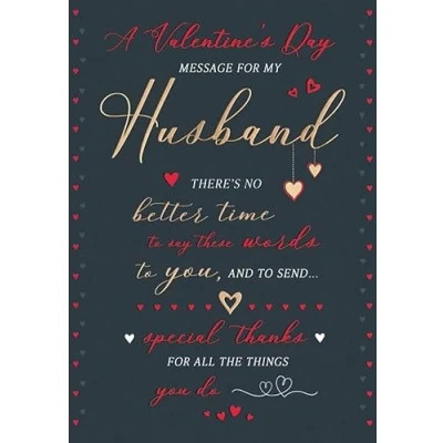 Piccadilly Greetings Valentine's Day Card, Classic Message for Husband 9 x 6 inches