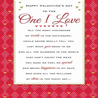 A High Quality Greeting Card and Envelope From Piccadilly Greetings Designed and made in the UK - supporting British jobs Caption: One I Love Description: One I Love Verse Approximate size: 9 x 6 inches