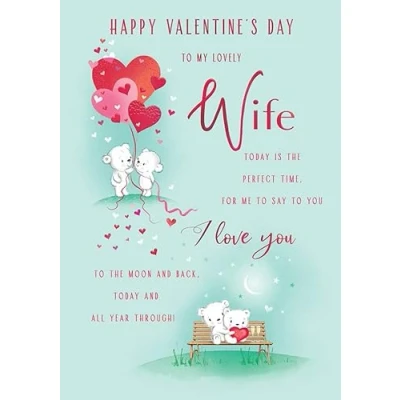 Valentines Day Card, To My Wonderful Wife 10 x 7 inches Piccadilly Greetings
