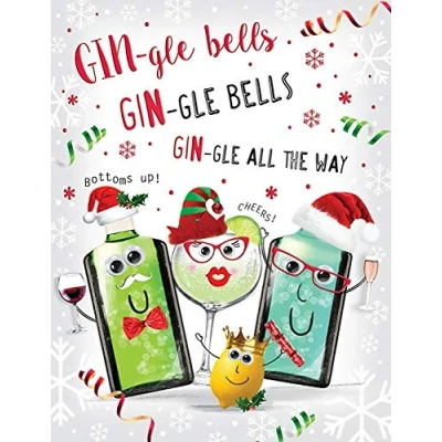 A High Quality Greeting Card and Envelope From Piccadilly Greetings Designed and made in the UK - supporting British jobs Caption: Open Description: Gin-gle bells Approximate size: 8 x 6 inches