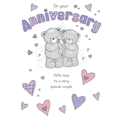 High quality greeting card and envelope Caption: Anniv Your Description: Bear Couple Holding Glasses Approximate size (inches): 9 x 6 Designed and made in the UK