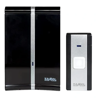 Ideal as a bell, indoor call or personal alarm. Optical bell indicator for people with reduced hearing Radio transmission (frequency 433.92 MHz). Range: up to 80 m outdoors. 20 selectable tones. Volume: approx. 85 dB.2-level volume adjustment Useful at home, in a restaurant, in an office or for those in need of care. Bell and bell button battery operated. Bell button programmed to Kliengel Requires no bell installation. Designed for operation under changing weather conditions (IP44), Manufacturer: Zamel