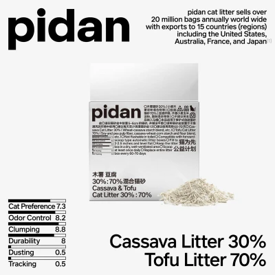 pidan Cassava & Tofu Clumping Cat Litter (4x2.4 kg/6L) 70% 30% Cassava, Plant Based Biodegradable, Fast Clumping, Low Dust Tracking, Light Scent, Strong Odour Control