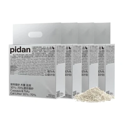 JoybuyPidan Cassava&Tofu Mixed Cat Litter features a 30% cassava and 70% tofu blend, offering effective odor control and clumping. This pack includes four bags, providing a natural, low-dust, and environmentally friendly litter option for your cat.